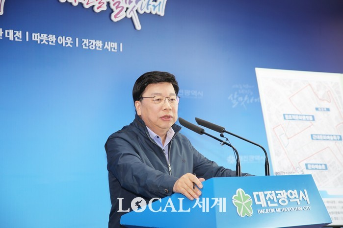 ▲권선택 대전시장이 26일 시청 브리핑룸에서 기자회견을 열고 있다. 오영균 기자. |