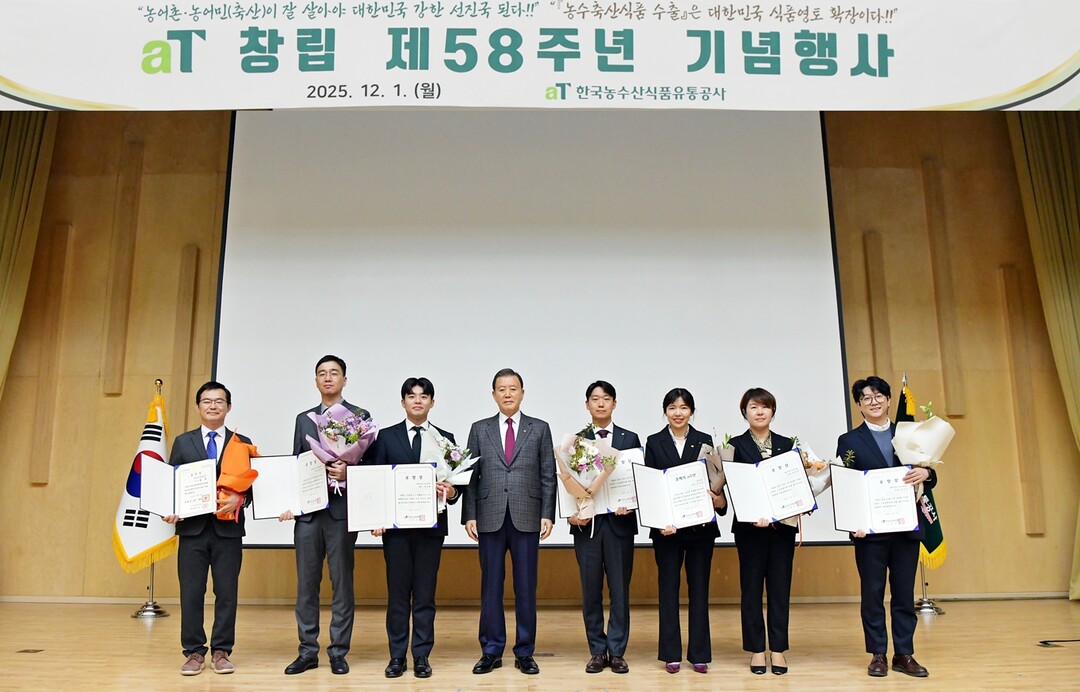한국농수산식품유통공사(aT, 사장 홍문표)는 1일 나주 본사에서 창립 58주년 기념행사를 개최했다.