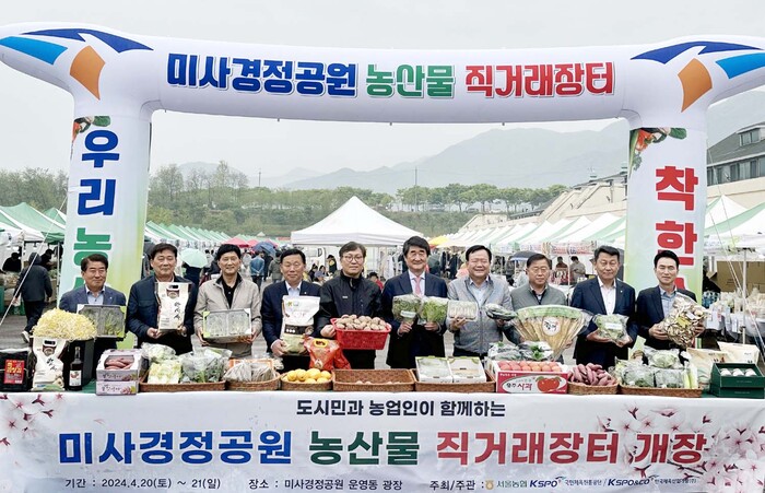 농협 서울본부(본부장 김상수)는 20일(토)부터 이틀간 하남 미사경정공원에서 남서울농협(조합장 안용승), 한국체육산업개발(대표이사 신치용)과 함께‘미사경정공원 농산물 직거래장터’를 개최하여 공원을 찾은 지역주민들에게 뜨거운 관심을 얻었다.
