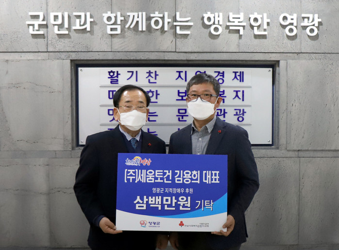[로컬세계 오승용 기자]전남 영광군은 지난 13일 ㈜세움토건에서 지역 장애인에게 희망과 사랑을 전하고자 영광군에 희망 2021 나눔캠페인 성금 300만원을 기탁했다고 14일 밝혔다.