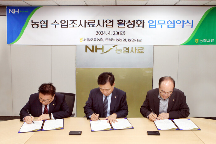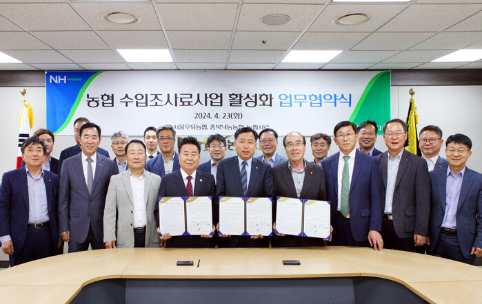 농협사료(대표이사 김경수)는 23일 본사 대회의실에서 서울우유농협(문진섭 조합장), 충북낙협(신화식 조합장)과 수입조사료사업 활성화를 위한 업무협약식을 개최하였다.