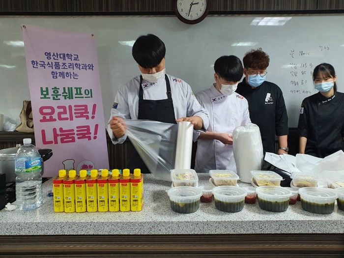 영산대 한국식품조리학과는 부산지방보훈청과 지난 2018년부터 '보훈쉐프의 요리쿡!나눔쿡!' 프로그램을 통해 총 12회에 걸쳐 보훈가족 50여 명을 모시고 직접 요리를 배울 수 있는 기회를 제공했다. 더불어 직접 만든 요리를 거동이 불편한 보훈가족에게 나누어 주는 재능기부 활동까지 꾸준히 이어왔다.