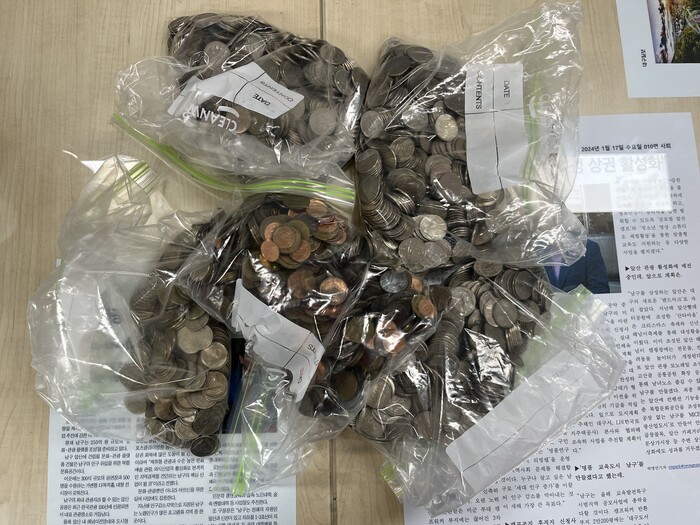 ▲ 대구 남구 봉덕1동 행정복지센터에 지난 9일 오후 이름을 밝히길 거부한 독지가 부부가 방문해 수년간 모은 현금 17만원상당의 소액동전을 직접 기탁했다.(남구 제공) |
