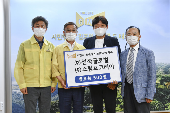 [로컬세계 김병민 기자]경기 김포시는 지난 22일 ㈜선학글로벌과 ㈜스텀프코리아에서 방호복 500벌을 시에 기탁했다고 23일 밝혔다.