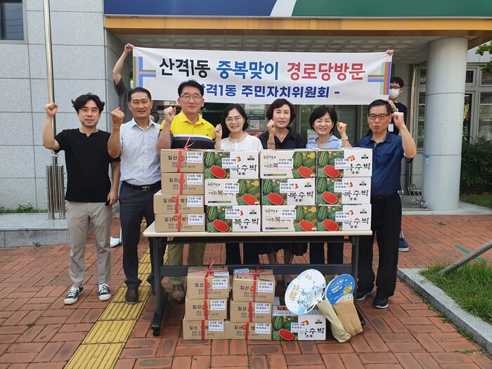 이번 행사는 주민자치위원회에서 중복을 맞이하여 관내 경로당 6개소 어르신 200여 명에게 떡과 수박을 전달하고 안부를 살피는 나눔 행사로 진행됐다.
