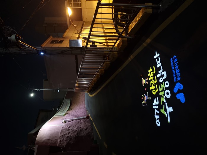 ‘동구로 달빛 안심길 조성사업’은 어두운 골목길에 도로표지병(우측 상단), 로고젝터(좌측 하단) 등 안전 시설물을 설치하여 여성과 아동 등 사회적 약자가 안전하게 귀가할 수 있도록 야간 보행환경을 개선하는 사업이다.