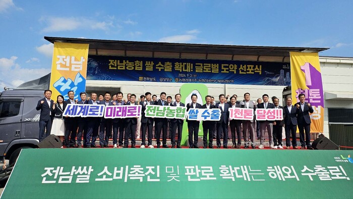 농협경제지주(농업경제대표이사 박서홍)가 지난 3일 쌀 주산지인 전남지역 소재 담양군통합RPC에서‘전남농협 쌀 수출 확대! 글로벌 도약 선포식!’을 개최하였다.
