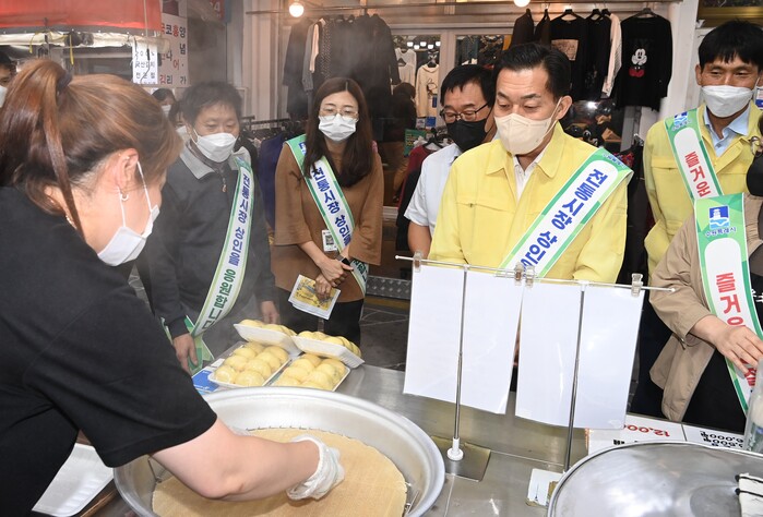 이재준 시장과 조청식 제1부시장, 실·국장 9명은 관내 11개 전통시장을 각각 방문해 현장을 점검한 후 온누리상품권으로 장을 봤다.