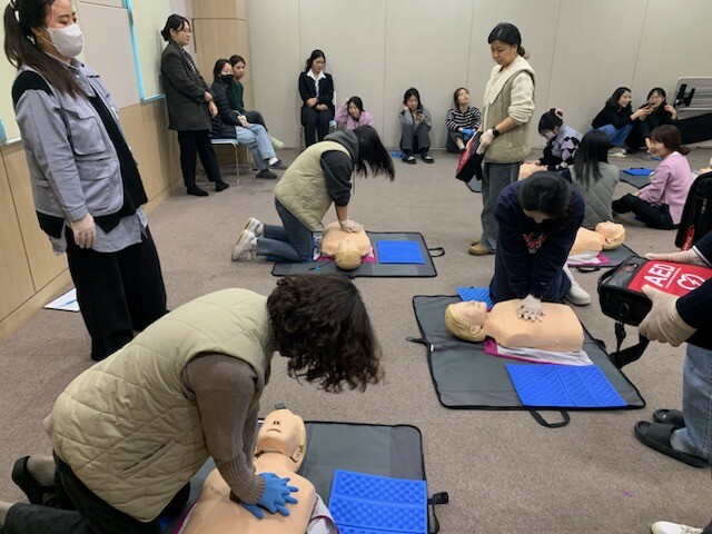 주요 내용으로는 ▲응급상황 발생 시 행동 요령 ▲심폐소생술 방법 ▲자동심장충격기 사용법 ▲마네킹을 이용한 심폐소생술 실습 ▲자동심장충격기 사용 실습 등 응급상황 발생 시 효과적으로 대처하기 위해 실제 상황을 가정하여 실습하는 방식으로 진행된다.