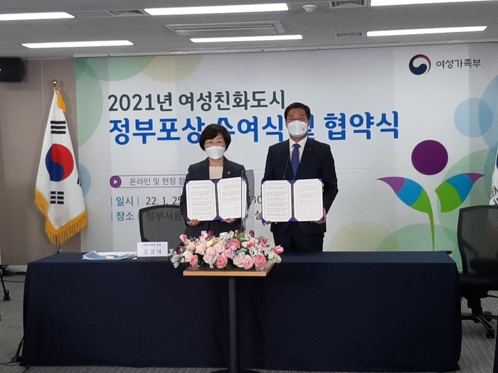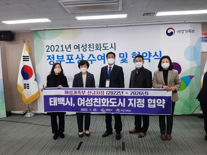 [로컬세계 박상진 기자]강원 태백시는 25일 정부 서울청사에서 진행된 “2021년 여성친화도시 정부포상 및 지정 협약식”에 참석해 정영애 여성가족부 장관과 여성친화도시 신규지정 협약을 맺었다.