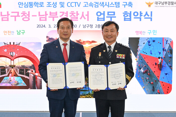 [로컬세계=박세환 기자] 대구 남구은 지난 27일 구청 회의실에서 남부경찰서와 안심통학로 조성 및 CCTV 고속검색시스템 구축을 위한 업무협약을 체결했다고 밝혔다.