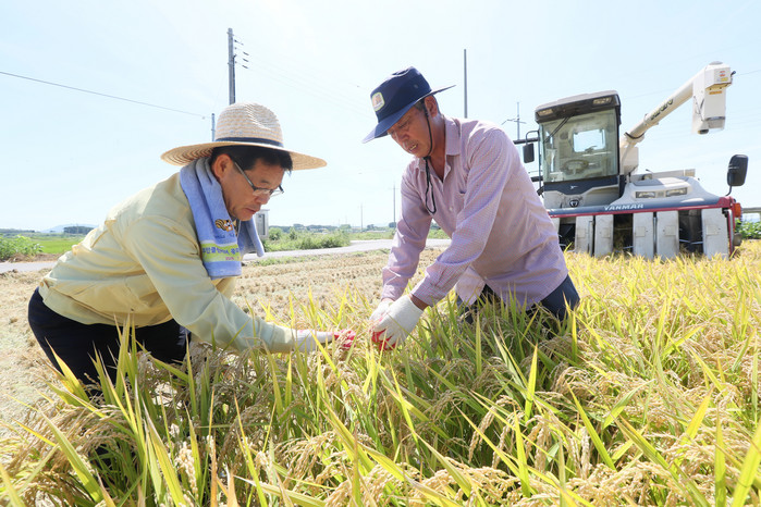 권익현 군수는 “유례없는 폭염과 가뭄으로 농민들의 어려움을 많이 겪고 있다”며 “앞으로 벼 수확이 아무 탈 없이 잘 이뤄져 모든 농민들이 풍년을 맛보는 한해가 되길 바란다”고 강조했다.