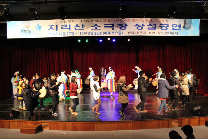 이 공연은 지난해 12월부터 시작돼 오는 3월까지 진행되며 누구나 무료로 지리산 소극장에서 토요일 저녁 7시 30분부터 9시까지 공연관람 할 수 있다.