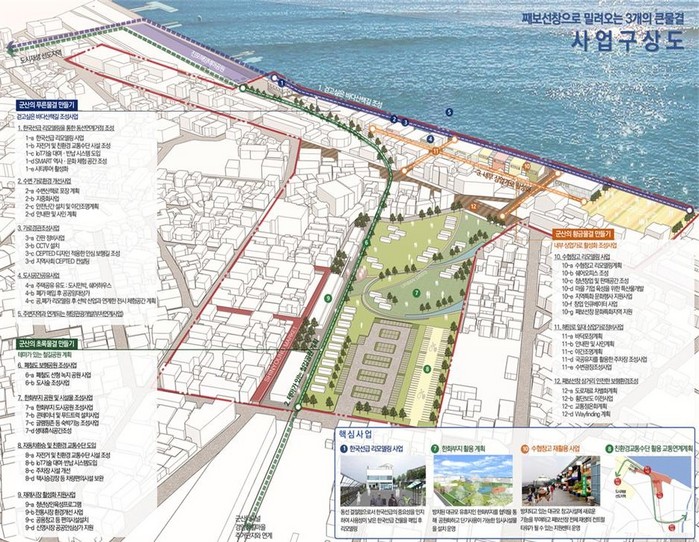 이번 선정된 중심시가지형 도시재생 뉴딜사업의 주요 내용은 진포해양테마공원과 신영시장 등 전통시장을 연결하는 폐철도를 활용해 원도심을 찾고 있는 많은 관광객들을 전통시장 밀집지역으로까지 유입을 유도해 도시재생사업의 효과를 높인다는 계획이다.