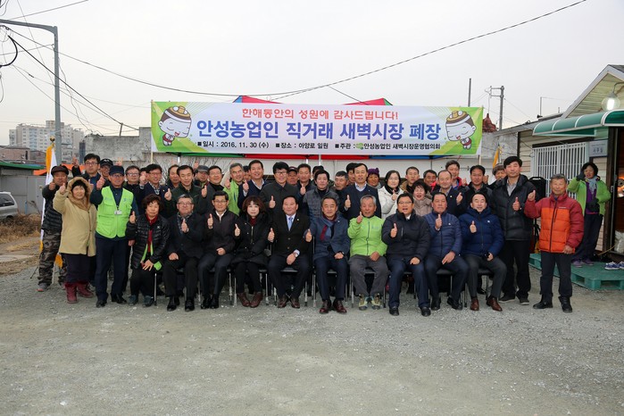 운영협의회가 주관한 새벽시장 폐장식에는 황은성 시장을 비롯한 김학용 국회의원, 도의원, 시의원, 지역농협장, 참여농가 등 200여명이 참석해 한해 동안의 농업인의 노고에 대하여 따뜻한 격려와 함께 이야기를 나누고 금년도 새벽시장 폐장을 아쉬워하며 내년을 기약했다.