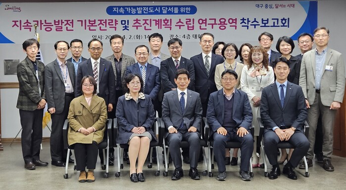 [로컬세계=박세환 기자]대구 달서구가 지난 2일 오후 2시 구청 4층 대회의실에서 관련분야 전문가와 관계 부서 공무원 등 약 25여명이 참석한 가운데‘지속가능발전 기본전략 및 추진계획 수립 연구용역 착수보고회’를 개최했다.