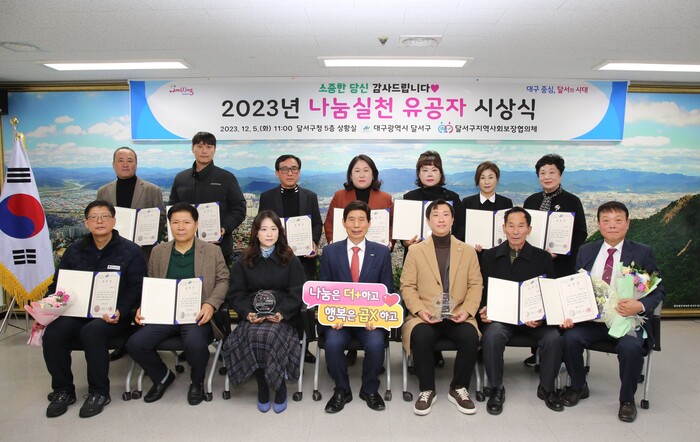 [로컬세계=박세환 기자] 대구 달서구는 지난 5일 나눔실천 유공자 및 축하객 30여명이 참석한 가운데 '2023년 나눔실천 유공자 시상식'을 개최했다.