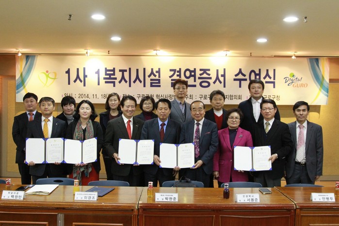 이번 결연식을 통해 케이엘피코리아(주), ㈜위티에스, 신한은행 구로디지털금융점, 포도학사, 베스트 건강검진센터, 안경박사 구로디지털점 등 6개 기업들이 구로중독관리통합센터, 가정폭력피해자지원시설, 구로노인종합복지관, 성프란치스꼬 장애인종합복지관, 구로구사회복지협의회, 화원종합사회복지관 등 관내 6개 사회복지시설을 각각 후원하기로 약속했다.