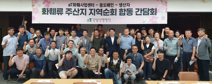 ▲ 화훼류 주산지 지역순회 합동 간담회 기념사진. 한국농수산식품유통공사 제공 |
