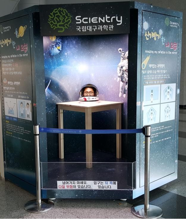 [로컬세계 박세환 기자] 국립대구과학관이 착시효과를 적용한 신규 전시품 ‘신기방기 한 내 모습(Amazing my reflection in the mirror)’을 관람객에게 선보여 인기를 모으고 있다.