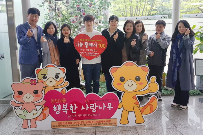‘나눔릴레이 100’은 동탄 2동 지역사회보장협의체가 주관하고 있으며 소외된 이웃의 어려움을 지역 내에서 해결할 수 있도록 복지사각지대 및 복지자원을 발굴하는 사업이다.