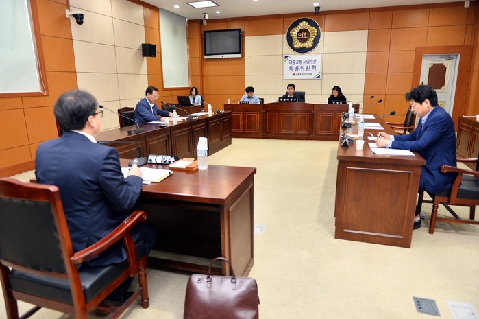 이날 회의에서 대중교통 특위 위원들은 김현기 교통과장으로부터 세종도시교통공사 설립 진행사항 및 시내버스 재정지원 집행사항, 시영버스 운행에 따른 문제점 및 개선사항 등 대중교통 전반에 대한 주요업무 추진사항을 청취했다.