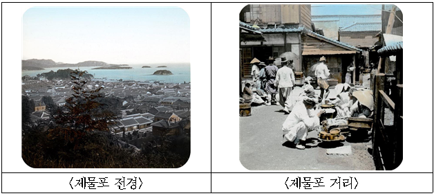 제물포 사진은 외국인 선박이 드나들었던 개항의 상징 제물포항의 전경, 전통 가옥이 즐비한 한국인 거주지와 독일식·일본식 건축물이 들어선 외국인 거주지를 담은 사진, 제물포 수산 시장 등 총 15장으로 개항 후 변화하고 있는 제물포의 모습을 보여준다.