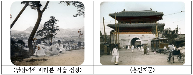 주요 서울 사진은 남산에서 바라본 서울의 전경, 더 이상 왕의 공간이 아닌 외국인 관광객이 드나드는 옛 궁궐 경복궁, 다양한 사람들의 삶을 엿볼 수 있는 운종가, 최초의 도심 공원인 탑골 공원, 재건된 숭례문과 전차가 지나가는 흥인지문 등 18장이 전시된다.