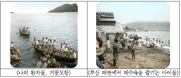 휴양지로 여겨질 만큼 아름다웠던 거문도에서는 자신이 직접 치료해 주었던 어선에 타고 있는 사람들을 사진으로 찍었다.