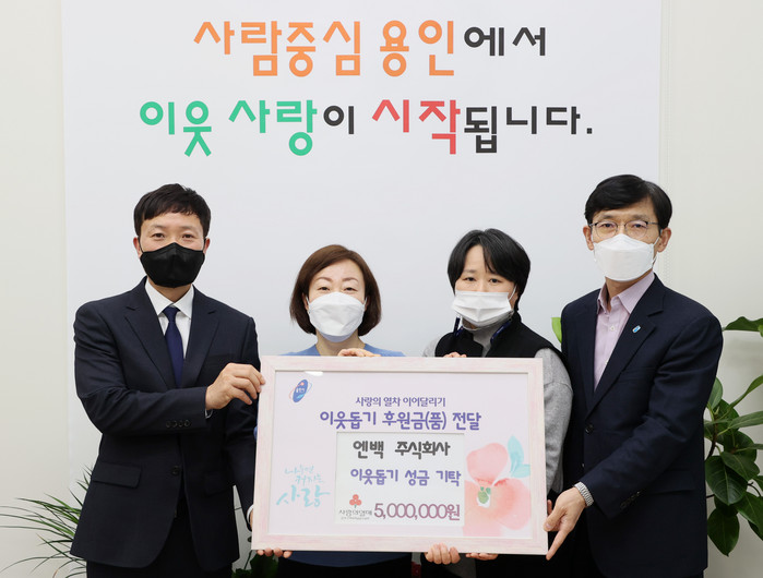 | ▲용인시에 (주)엔백에서 성금 500만원을 기부했다. 용인시 제공 |