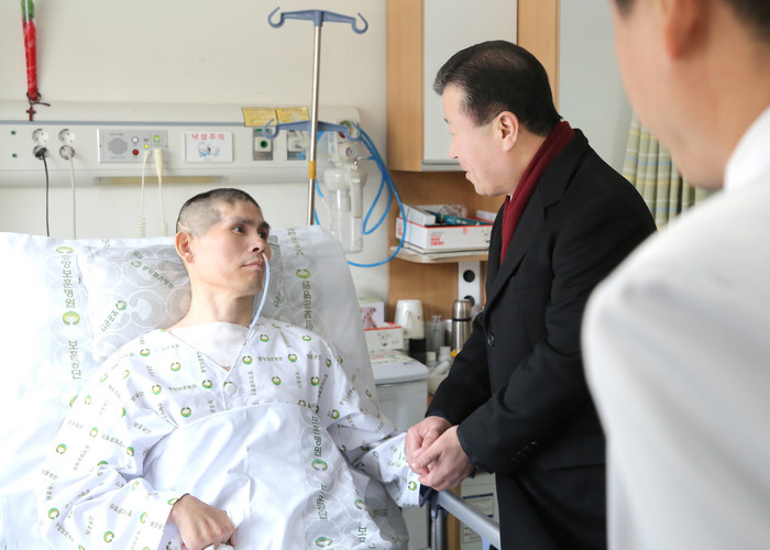 [로컬세계 주덕신 기자]김양제 경기남부경찰청장은 지난 20일 설 연휴를 앞두고 공무수행 중 불의의 사고로 1급 장애 판정을 받아 퇴직한 전 수원중부경찰서 소속 장용석 경장을 찾아 위로했다.