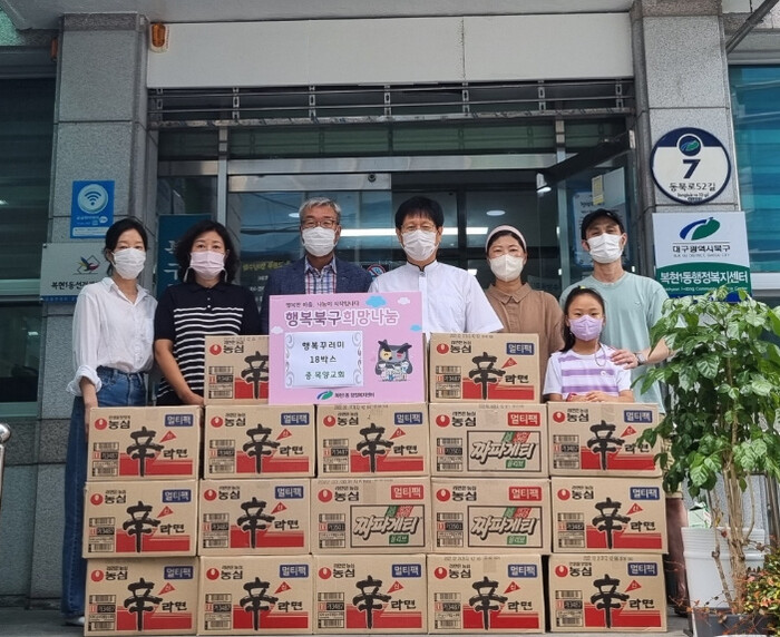 [로컬세계=박세환 기자] 대구 북구 복현1동 소재 목양교회(담임목사 노경섭)에서 21일 관내 저소득 가정을 위해 생필품을 담은 행복꾸러미 18박스를 복현1동 행정복지센터(동장 김희건)에 기탁하였다.