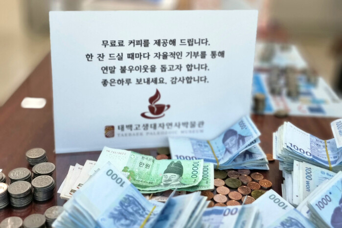 태백고생대자연사박물관은 관람객들에게 무료로 커피를 제공하고 조성된 기부금을 매년 초 복지정책과로 꾸준하게 기탁하고 있다.