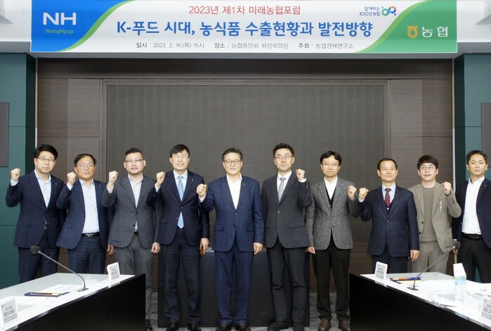 농협중앙회(회장 이성희) 농협경제연구소는 16일 서울 중구 농협중앙회 본관에서 산-관-학 각계 전문가 등 30여 명이 참석한 가운데 ‘K-푸드 시대, 농식품 수출현황과 발전방향’을 주제로 2023년 제1차 '미래농협포럼'을 개최했다.