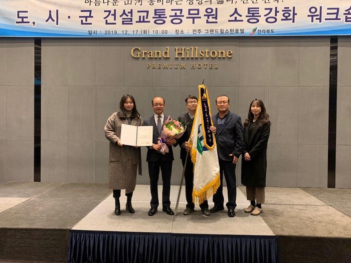 고창군 이종연 건설도시과장은 지난 17일 전주 그랜드힐스턴호텔에서 열린 ‘전북도 건설교통공무원 워크숍’에 참석해 최우수상 상패와 휘장을 전달 받았다.