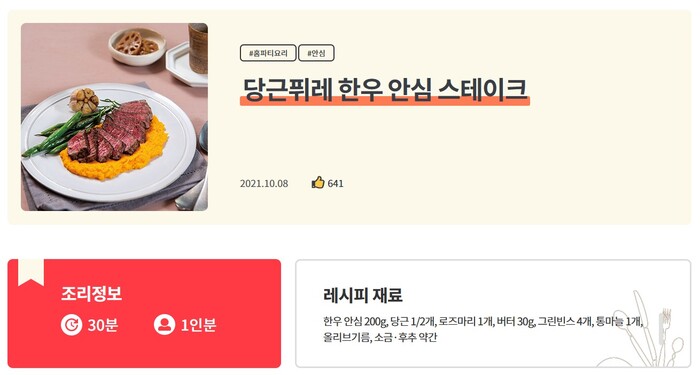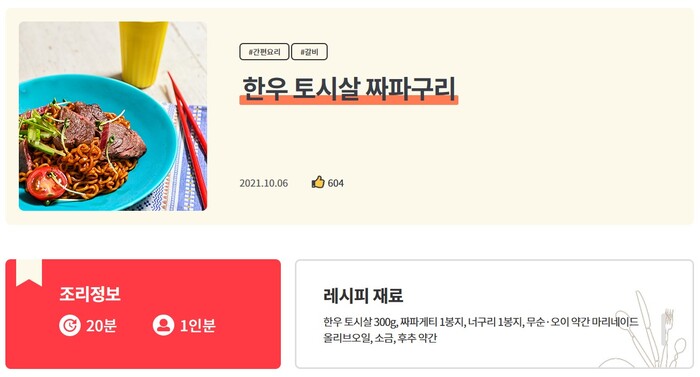 ▲ 한우유명한곳 홈페이지 ‘한우 추천 레시피’ 이미지(출처=한우자조금) |