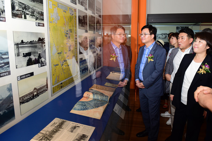수원박물관은 14일 기획전시실에서 수원시 승격 70주년 기념 특별기획전 ‘사람 중심 더 큰 수원’ 개막식을 열었다. 기획전은 10월 20일까지 이어진다.