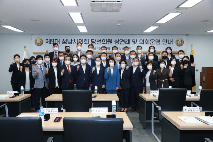 이날 상견례에서는 의원 배지 전달, 당선의원 본인 소개, 의회사무국 직원소개, 의정 특강, 본회의장 시설 견학 순으로 진행되었으며, 당선의원들은 제9대 의회에서 성남시 발전을 위해 최선을 다할 것을 다짐하기도 했다.