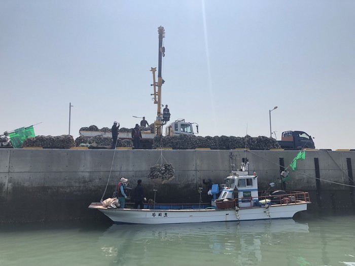 주꾸미가 알을 낳고 번식하게 될 피뿔고둥을 로프로 연결하는 방식으로 조성된 자연 산란장은 지역 어민과 함께 관리된다.