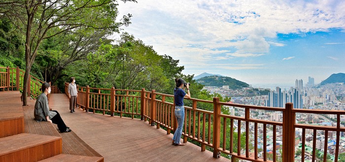 특히 보행데크 구간 중 전망 좋은 곳에는 별도의 전망공간을 마련해 탁 트인 산복도로 풍경을 바라보며 휴식과 힐링의 시간을 가질 수 있도록 했다.
