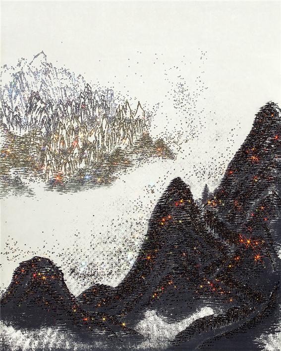 ▲ Metallic Blue Mountain_Mixed Media on canvas & MADE WITH SWAROVSKIⓇ ELEMENTS (80.3X100.0cm_ 2014). <사진제공=김종숙>
