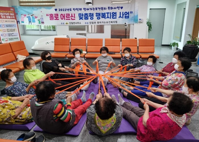 [로컬세계=박상진 기자]경북 의성군(군수 김주수) 단밀면은 지난 18일 2022년도 단밀면 보건복지특화사업 ‘어르신 행복을 드릴께요’ 프로그램의 일환으로 세라밴드 운동을 운영해 어르신들에게 건강을 듬뿍 안겨 드렸다.