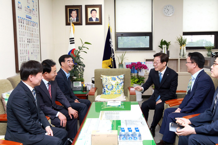 [로컬세계 주덕신 기자]민선 7기 경기도정을 책임진 이재명 신임 경기도지사가 2일 오전 10시 30분 취임 인사차 경기도의회 더불어민주당 대표의원실을 방문해 염종현 더불어민주당 대표의원과 환담을 가졌다.