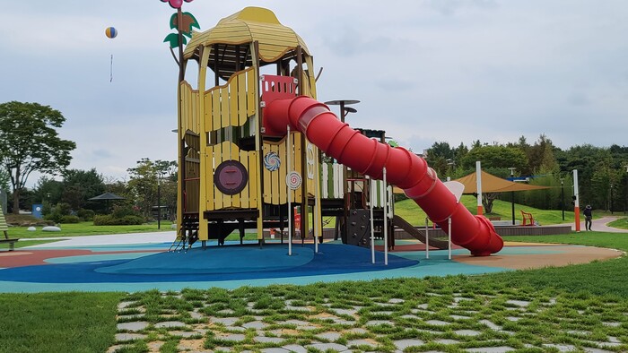 ▲충남 금산군 금성면 양전2리 소재 양전리쓰레기매립장 상부 이슬공원 내 중심부에 위치한 키즈 존 전경, 이슬공원 조성사업은 쓰레기 매립이 종료된 직후인 2008년에 시작돼 2009년에 준공됐다. 현재는 올해초부터 키즈존 설치 및 산책로 조성 등 이슬공원 재정비사업이 진행 중이며 이달 중으로 완료될 전망이다. |