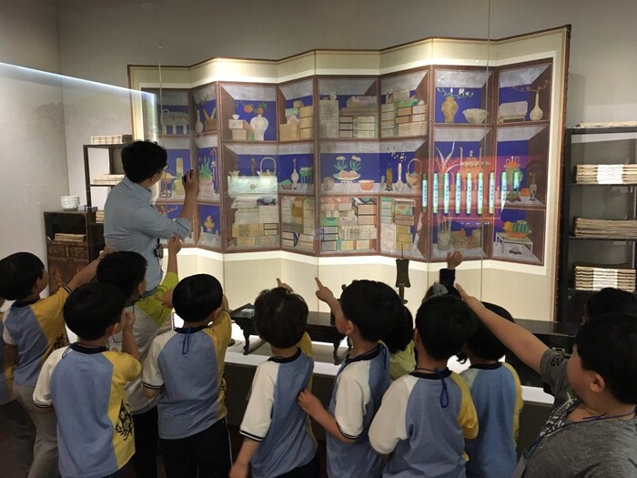 3월 23일부터 6월 29일까지 운영되는 “쓱싹쓱싹 보물아 나와라”는 박물관 여주역사실(여마관 2층)에 전시 중인 <책가도 8폭 병풍>을 관찰하며 스크래치 활동지를 이용하여 그림 속 보물을 찾고, 박물관 소장유물 사진 스티커를 활용하여 나만의 책가도를 만드는 프로그램이다. 책가도 속에 그려진 다양한 물건들의 숨겨진 상징적 의미를 알아보며 옛 선조들의 길상적 염원을 이해할 수 있다.