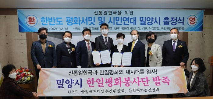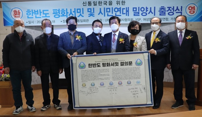 또 장덕봉 한반도평화서밋경남조직위원장과 이정화 한반도평화서밋밀양시조직위원장, 이상일 UPF(천주평화연합) 밀양시지부장, 일반 시민들이 참석해 ‘한반도평화서밋 선언문' 채택과 '밀양시 한일평화봉사단 발족식'을 동시에 가졌다.