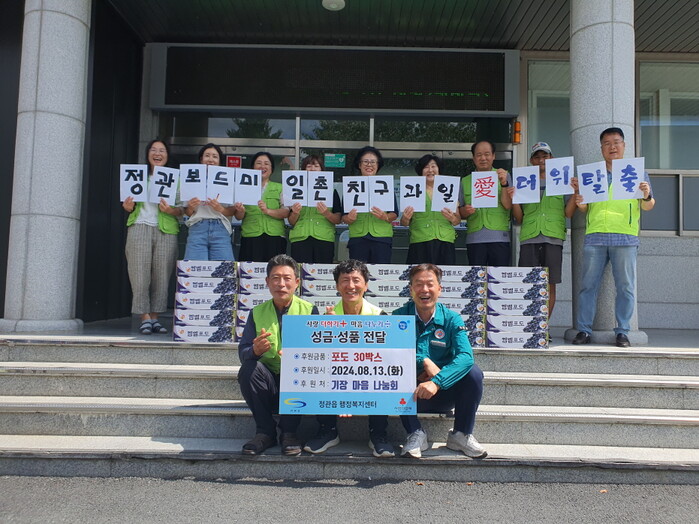 [로컬세계 부산=맹화찬 기자]부산 기장군 정관읍은 지난 13일 말복을 맞이해 정관읍지역사회보장협의체와 함께 관내 저소득 취약계층 30가구에 과일을 전달하는 ‘과일愛(애) 더위탈출’ 행사를 진행했다고 14일 밝혔다.