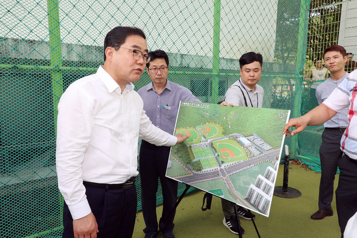 이번 방문은 최근 감사용 감독이 언론을 통해 “창원에 리틀야구장이 없어 리틀야구장을 만들어 주시면 꿈나무들을 열심히 가르쳐 NC다이노스에 입단할 수 있는 밑거름을 만들겠다. 시장님 부탁드리겠습니다”라고 인터뷰한데 따른 화답으로 직접 현장을 방문한 것이다.