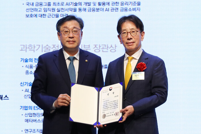 KB국민은행(행장 이재근)은 한국IT서비스학회가 한국과학기술회관에서 개최한 ‘대한민국 IT서비스 혁신대상’에서 과학기술정보통신부장관상을 수상했다고 밝혔다.