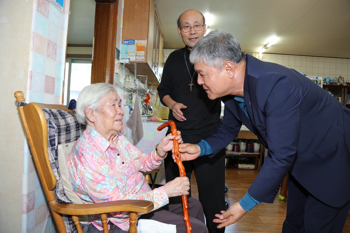 문정우 군수는 추부면 신평2리 한복희 어르신을 비롯한 관내 4명의 장수 어르신댁을 직접 방문, 만수무강의 의미로 큰절을 올리며 건강 장수를 기원하고 축하 인사를 전했다.